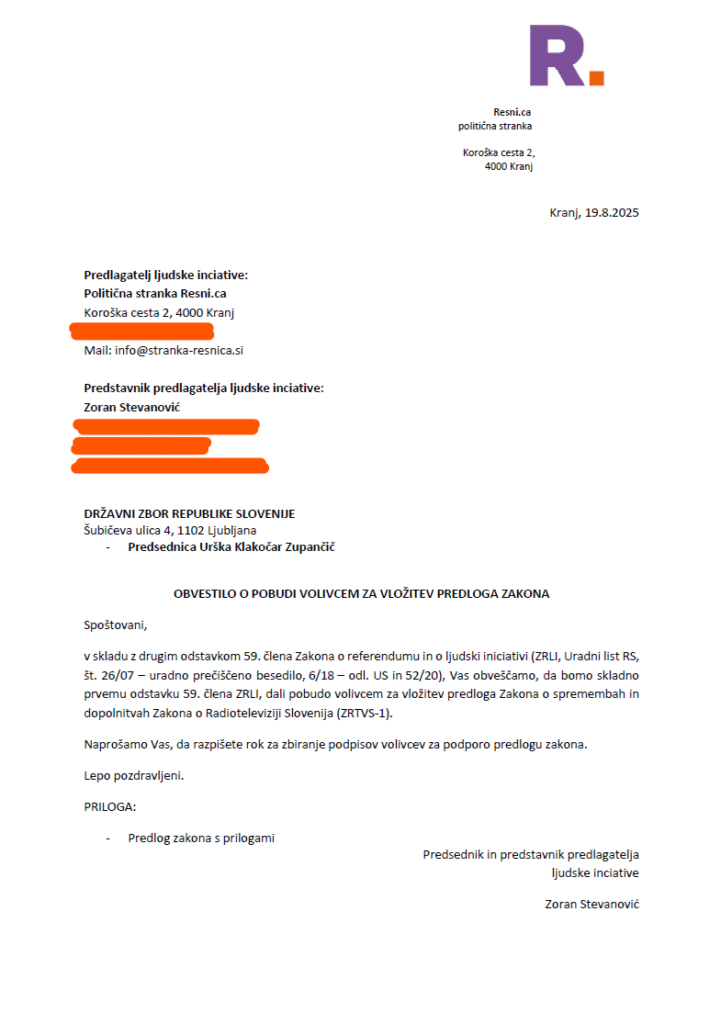 PRIČETEK ZBIRANJA PODPISOV: 1. 9. 2025, POTREBNO ŠTEVILO PODPISOV: 5.000